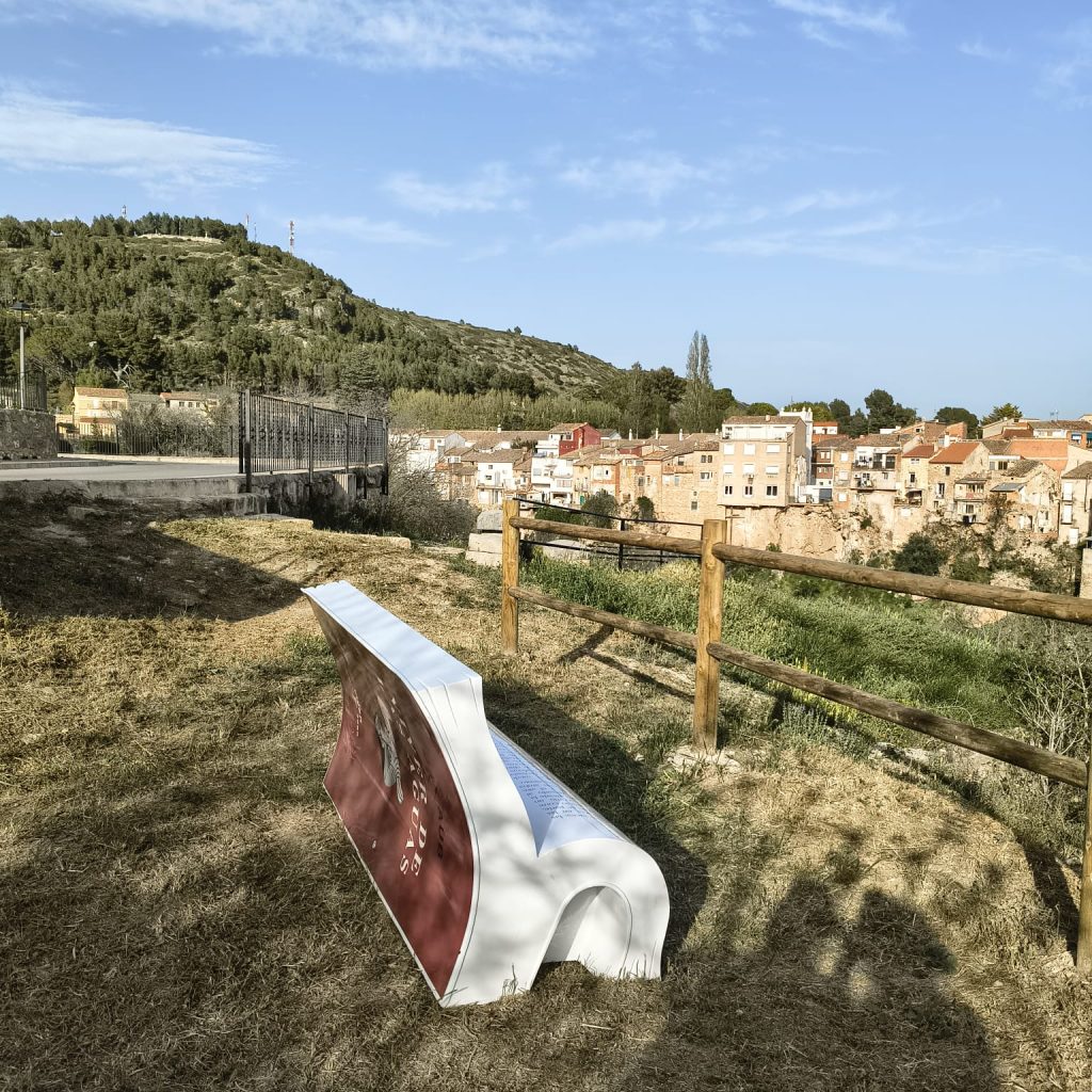 Este nuevo banco‑libro permite vivir una experiencia singular: contemplar el pueblo desde el mirador como si se estuviera dentro de las propias páginas, integrando lectura, memoria y territorio en un mismo gesto.